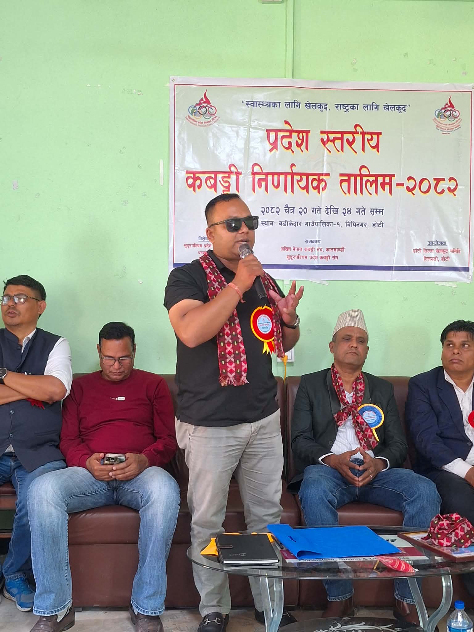 डोटीको बडीकेदार गाउँपालिका – १ बिपिनगरमा आयोजना गरिएको उक्त तालिम चैत्र २० गते देखि २४ गतेसम्म सञ्चालन गरिएको थियो । सुदूरपश्चिम प्रदेश खेलकुद परिषद्, धनगढी कैलालीको विशेष सहयोग, अखिल नेपाल कबड्डी संघ, काठमाडौं र सुदूरपश्चिम प्रदेश कबड्डी संघको समन्वय तथा डोटी जिल्ला खेलकुद समिति, सिलगढीको आयोजनामा तालिमको आयोजना गरिएको हो ।