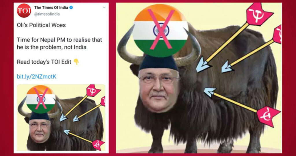 नेपालको पछिल्लो राजनीतिक घटनाक्रमबारे भारतीय मिडियाको प्रस्तुति निकै तल्लो स्तरको देखिएको छ। ओली सरकारका निर्णयप्रति असन्तुष्ट नयाँ दिल्ली संस्थापनको मनोविज्ञानलाई खुसी पार्ने एवं शदियौंदेखि सांस्कृतिक–सामाजिक–आर्थिक अन्तरसम्बन्धमा गाँसिएको छिमेकी मुलुकलाई खिस्याउने मनोवृत्तिबाट भारतीय मिडियाप्रेरित छन्।