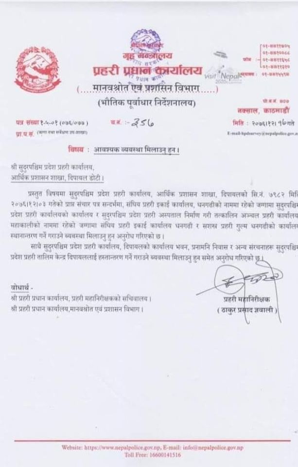 पछिललो समय कोरोना भाइरस (कोभिड –१९) को त्रासका कारण नेपाल सहित पुरै विश्व त्रसित रहेको छ । मुलुक पुर्ण रुपमा लकडाउनमा छ । जनतालाई घरबाहिर ननिस्कन कडा निर्देशन दिइएको छ । यहि मौकालाई छोपेर डोटी तथा पहाडबासि माथि अप्रिल फुल बनाइएको छ । यो समयमा जनताले आन्दोलन समेत गर्न नसक्ने बातबरणको मौका छोप्दै सुदूूरपश्चिमाञ्चलको पुरानो क्षेत्रीय सदरमुकाम दिपायलमा रहेको तत्कालिन सुदूरपश्चिम क्षेत्रीय प्रहरी कार्यालय दिपायल तथा सुदूरपश्मि क्षेत्रीय प्रहरी अस्पताल दिपायल तत्काल सार्न प्रहरी प्रधान कार्यालय नक्साल काठमाण्डौले निर्देशन दिएको छ ।