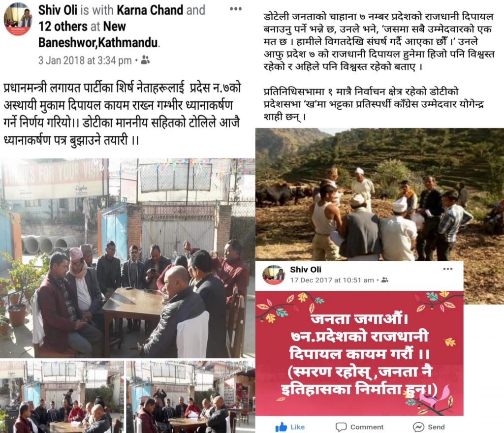 निर्वाचन अघि राजधानी गुमाउँने डरले उमेद्वारलाई राजधानी डोटीमै राख्ने वाचा खुवायर मतदान गरेका यहाँका जनताहरुले निर्वाचन पछि आफ्नो अधिकार, एतिहाँसिकता खोसिने र सरकारी सम्पती संरचनाहरु खेर जाने डरले बिभिन्न समयमा रचानात्मक दवावमुलक कार्यक्रमहरु गर्दै गए । त्यो समय नेकपाबाट निर्वाचित नेताहरुले राम्रै सपोर्ट गरे । जव देउवा सरकारले अस्थायी मुकाम तोक्ने तयारी थाल्यो तव तत्कालिन सरकारको बिरोधमा सबै नेताहरु हुम्मिय सरकारले अन्याय गर्न लागेको ढोल पिट्न थालियो । जनताको भावना माथी राजनीति गर्ने र तत्कालिन सरकारलाई जनताका नजरम गिराउँने यो भन्दा ठुलो मौका कुनै थिएन । यसको अग्रपङ्तीमा मुख्यमन्त्री पनि थिए ।